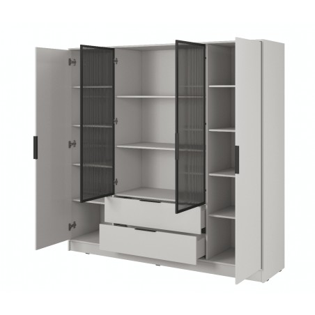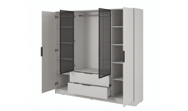 The Kelly 4DRM wardrobe is the perfect choice for lovers of modern design and functionality. Its glazed fronts and optional LED lighting attract attention and add elegance to any interior. The transparent doors create a sense of lightness, while the solid body ensures stability. The LED lighting emphasizes the wardrobe's exclusivity, creating a cozy atmosphere.