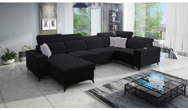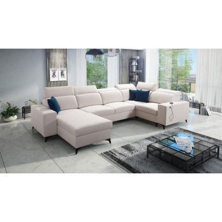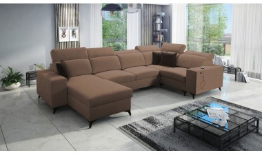 The combination of a classic design with modernity is a corner sofa with a sleeping function and a container for bedding, Bartone IV Mix.
