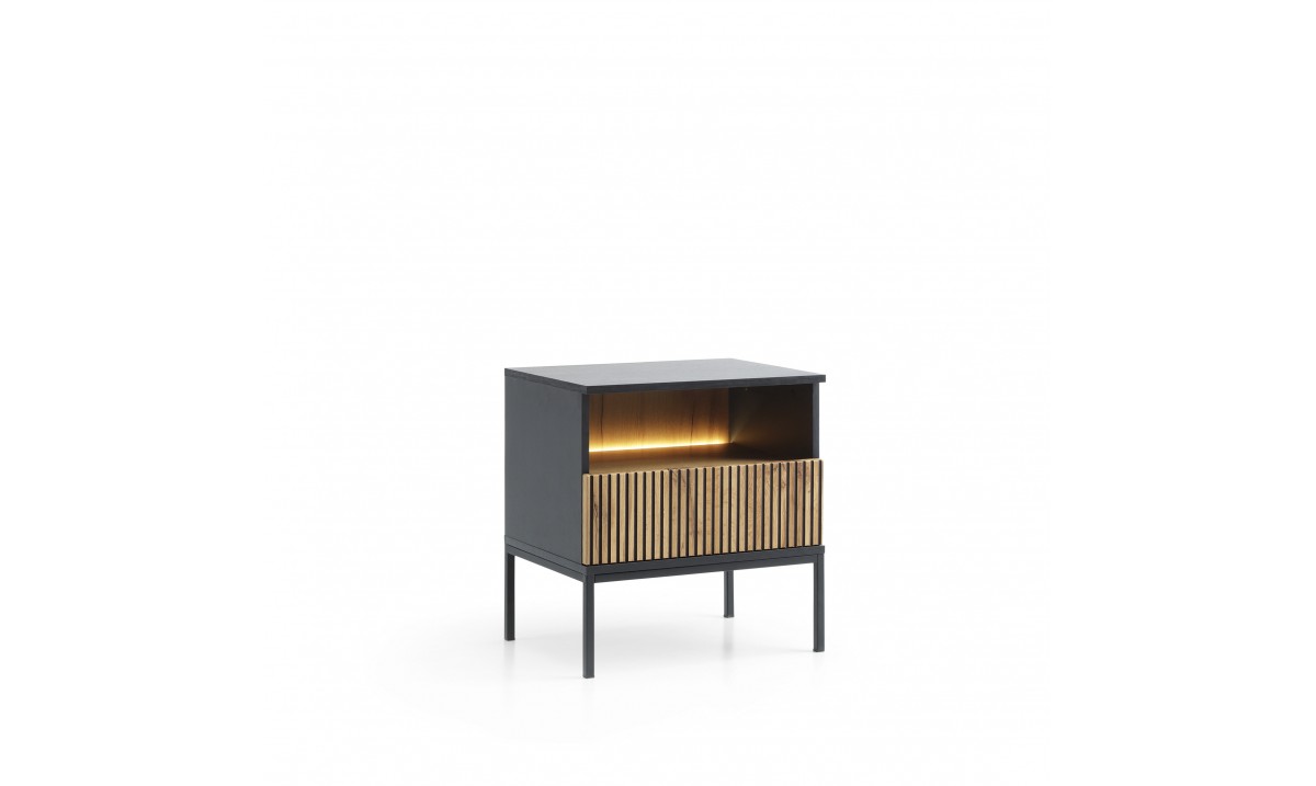 In addition, the LED lighting used inside the bedside makes each item presented on the shelves even more visible and effective.