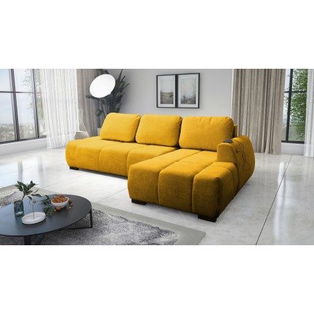 Decorative stitching on the seats and armrest give this small corner sofa a strong character.