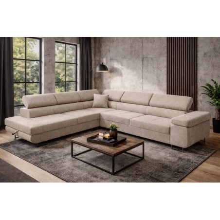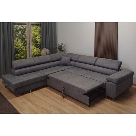This modern,Rodo corner sofa with a sleeping function combines elegant design with high functionality, perfect for a contemporary living room.