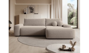 A luxurious corner sofa with a sleeping function and a bedding container.
