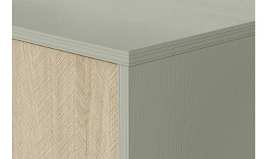 Fronts in the Scandi Herringbone decor are decorated with triangular gold-colored handles designed by us.
