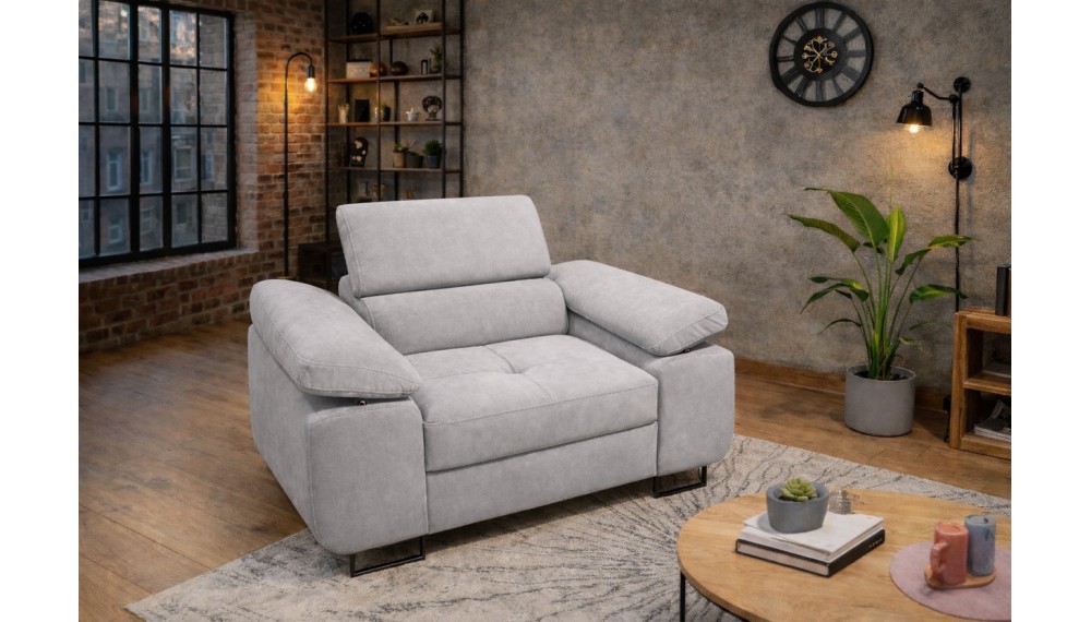 The armchair features an adjustable headrest, allowing you to customise support to your preferred position, as well as adjustable armrests for enhanced comfort during relaxation.