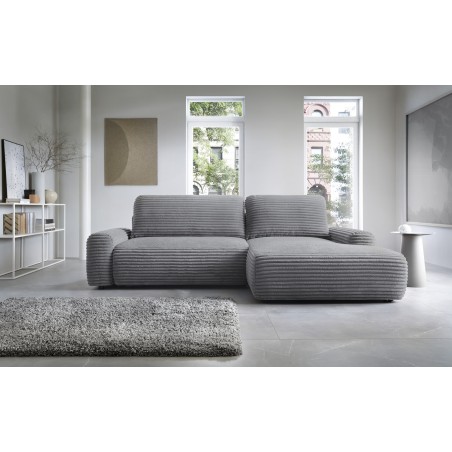 The sofa features a comfortable chaise lounge, allowing you to stretch out and relax after a long day.