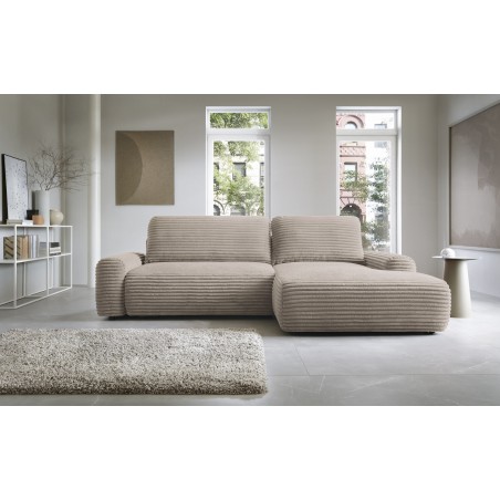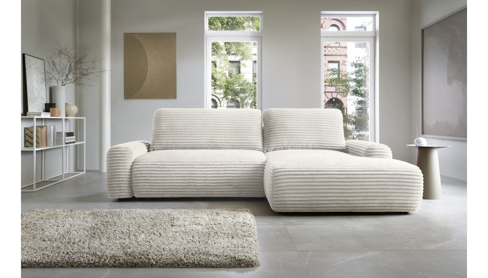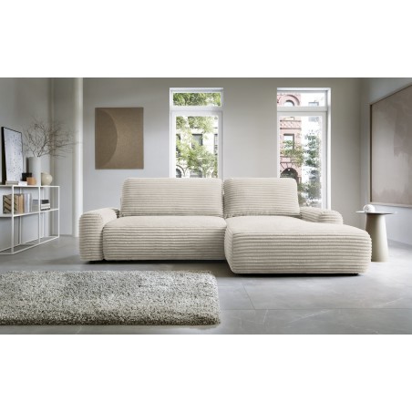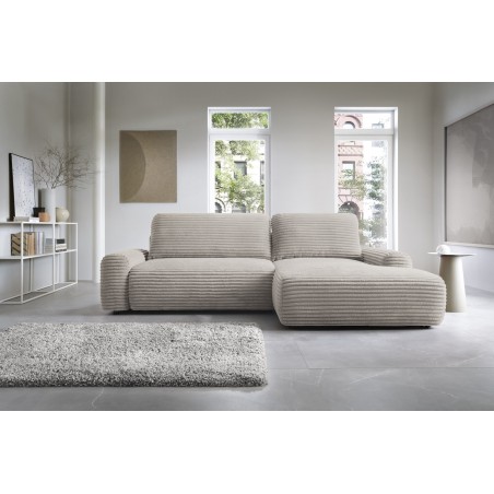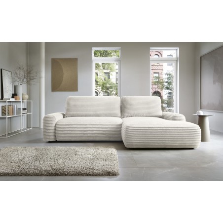 Kord corner sofabed is a modern and elegant piece of lounge furniture in a light cream color.