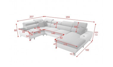 Chrome feet. Movable headrests. Sofa comes in several parts.