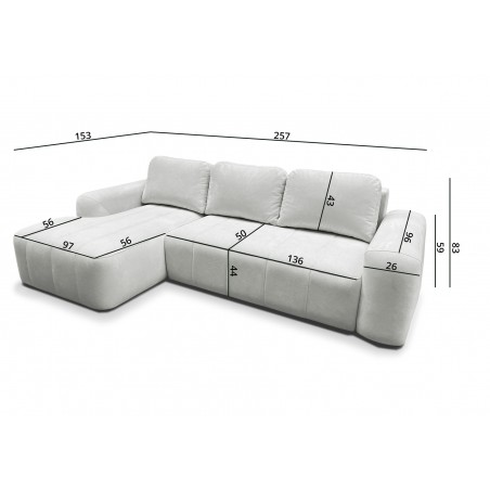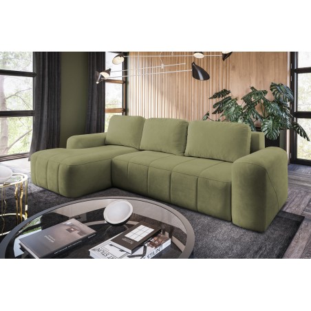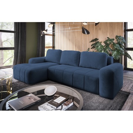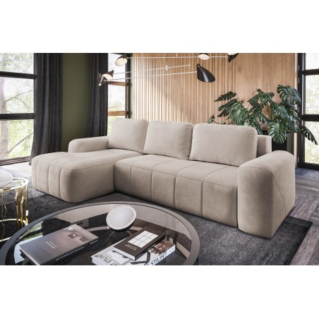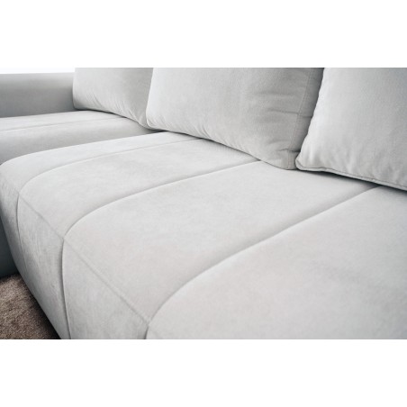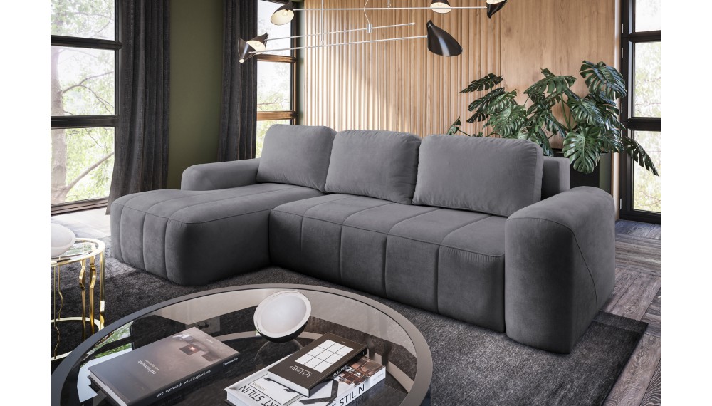 This modern corner sofa with a sleeping function Novelo I is distinguished by its minimalist form and elegant, versatile design, which perfectly complements contemporary interiors.