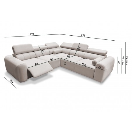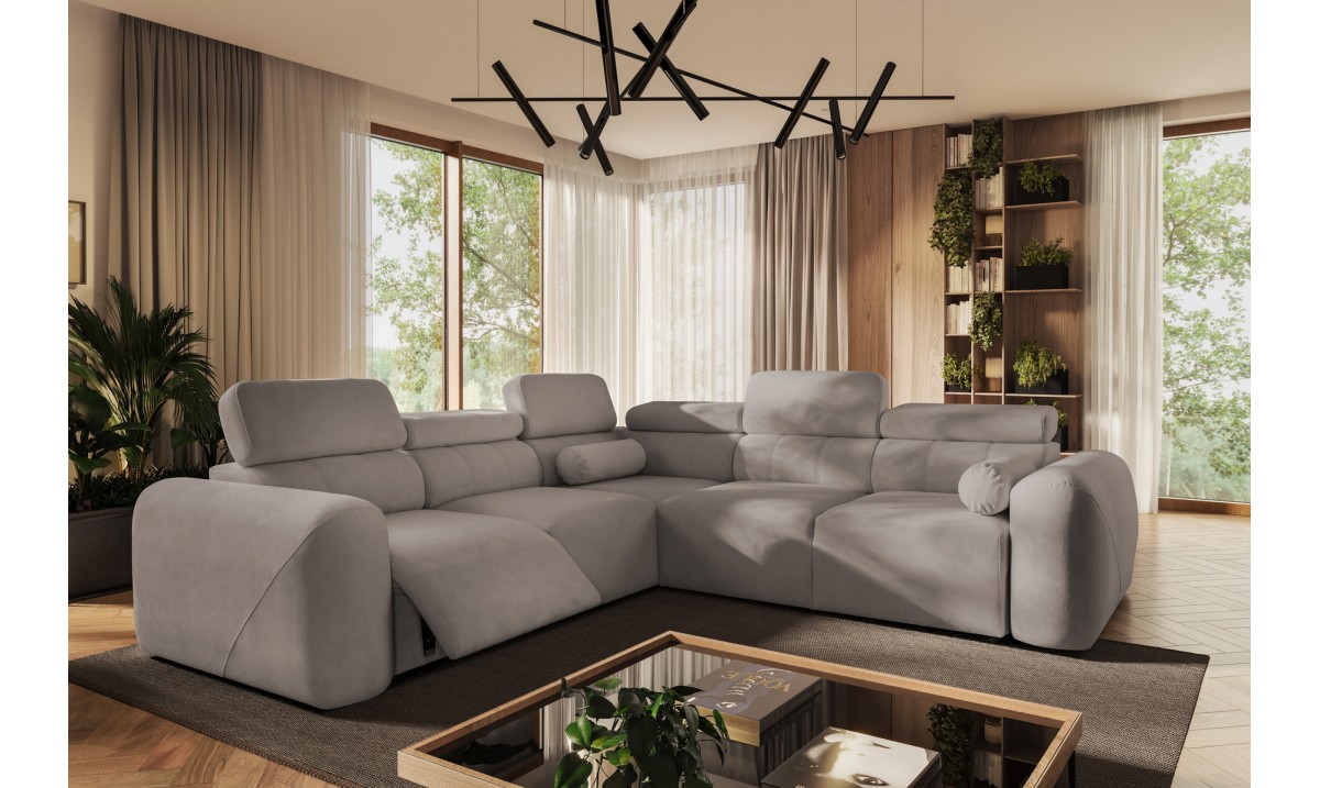 This model also features an electric footrest that allows for comfortable leg positioning and ensures the highest level of relaxation – with a single button, the corner sofa can be transformed into a home cinema-style relaxation area.