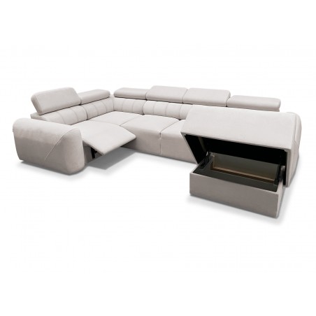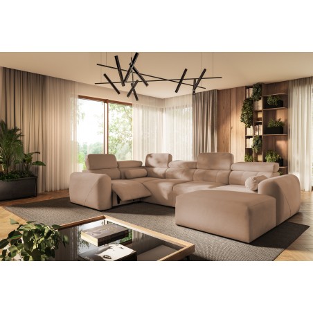 This model also features an electric footrest that allows for comfortable leg positioning and ensures the highest level of relaxation – with a single button, the corner sofa can be transformed into a home cinema-style relaxation area.