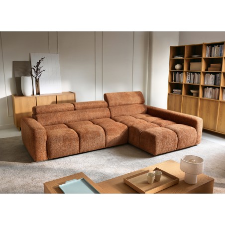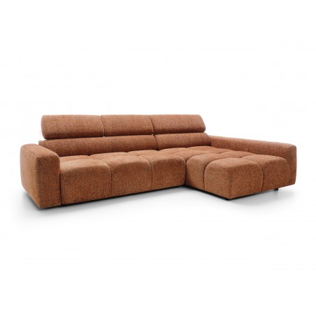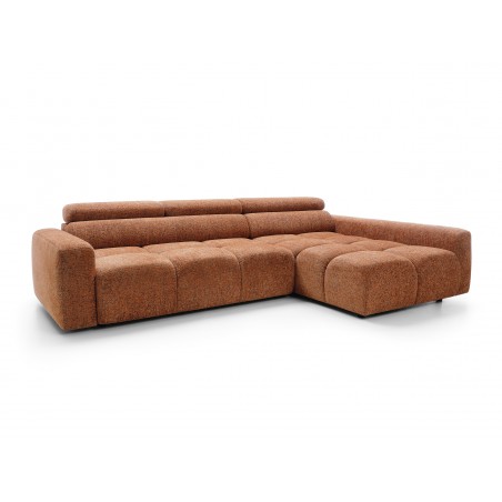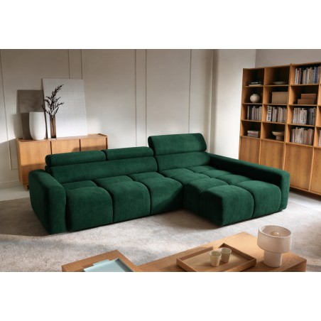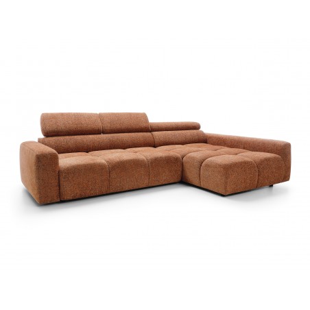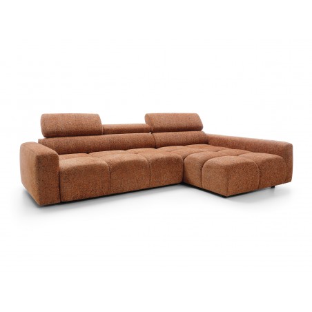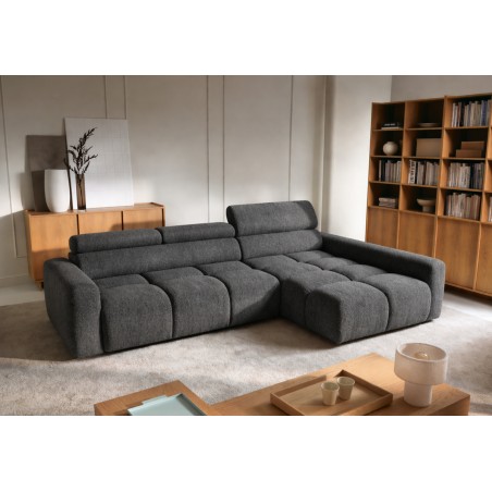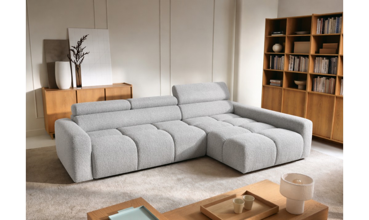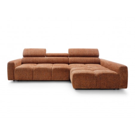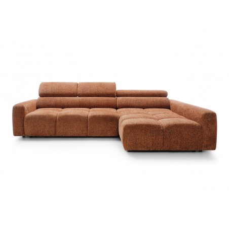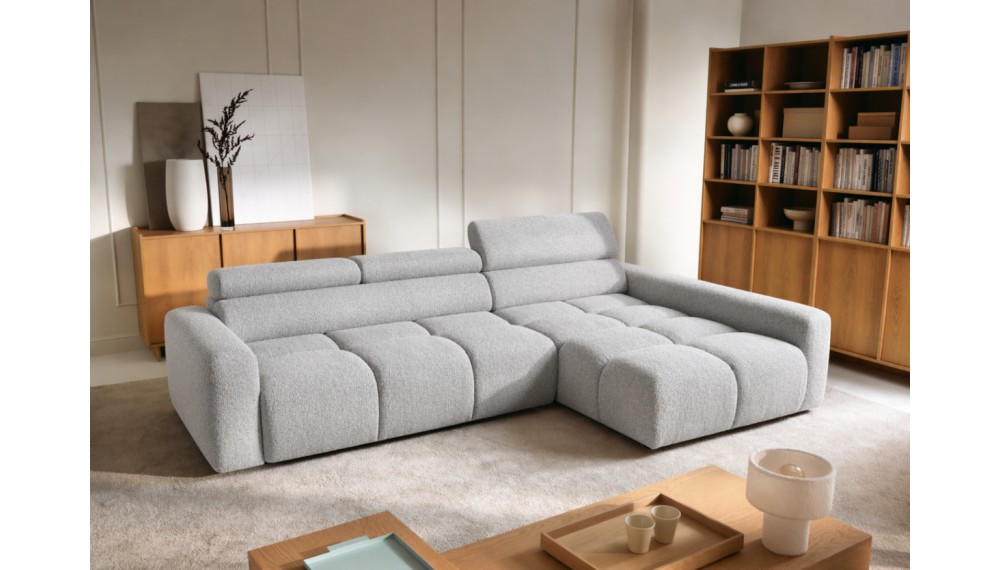Narożnik posiada również ruchome zagłówki oraz regulację głębokości siedziska, co pozwala idealnie dopasować ustawienie do indywidualnych potrzeb i zwiększa komfort codziennego użytkowania.