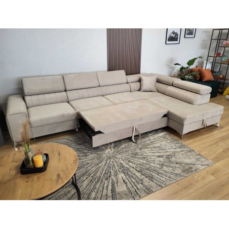Pojemnik na pościel – praktycznie ukryty w boczku narożnika, pozwala przechowywać niezbędne tekstylia zawsze pod ręką.