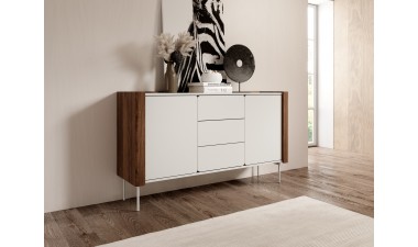 Kolejny raz postawiliśmy na proste bryły meblowe w tak bardzo pożądanym kolorze kaszmirowym, otulone płytą w niezwykle eleganckim dekorze orzechowym.