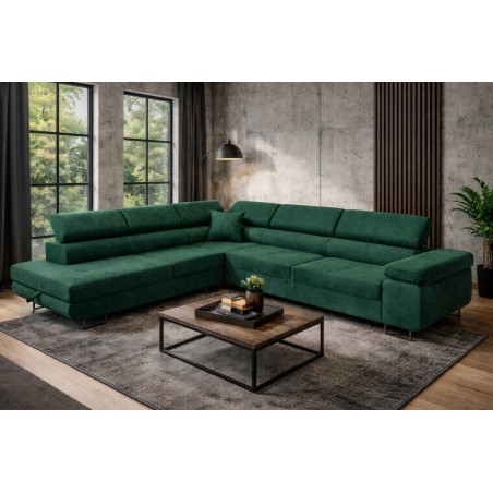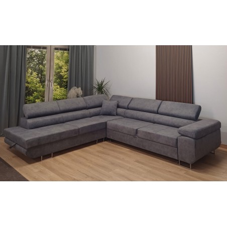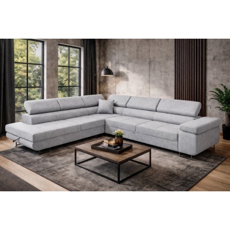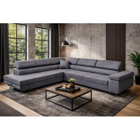 Ten nowoczesny narożnik Rodo z funkcją spania to połączenie eleganckiego designu i wysokiej funkcjonalności, idealne do współczesnego salonu.