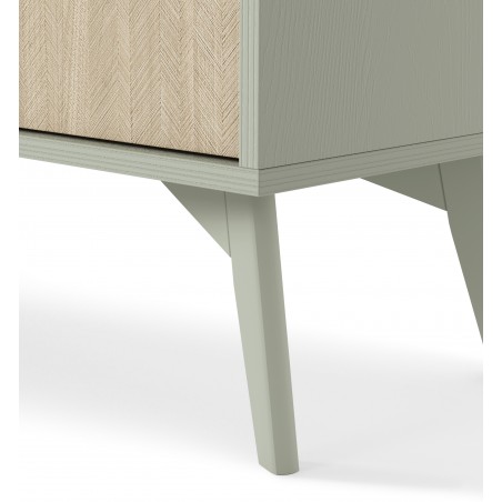 Bryły meblowe zostały osadzone na drewnianych nóżkach w kolorze korpusu.