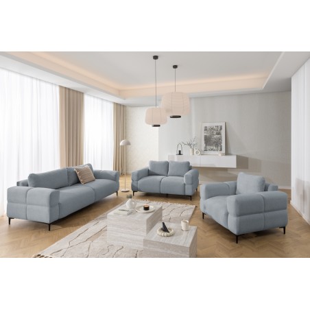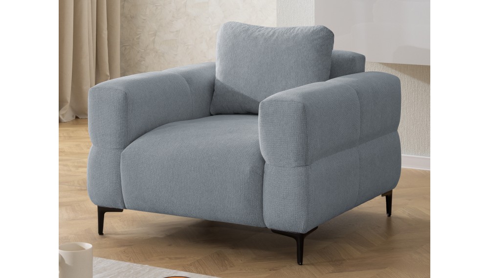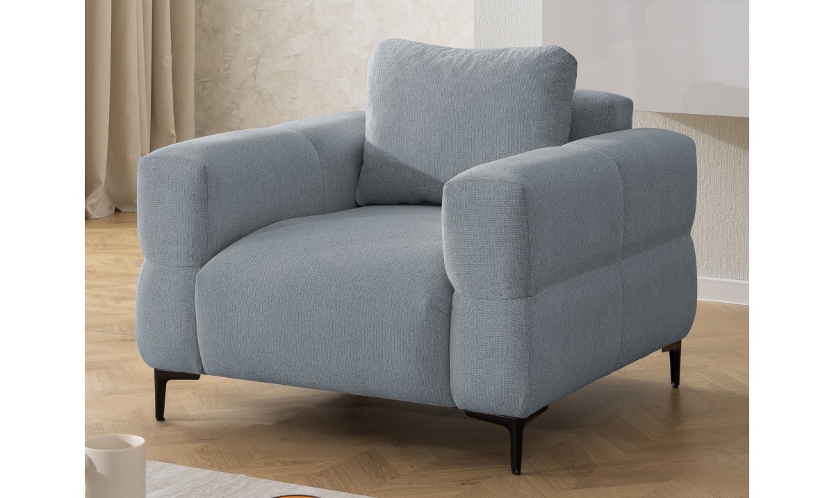 Malia to nowoczesny, masywny fotel o miękkiej, przytulnej bryle.