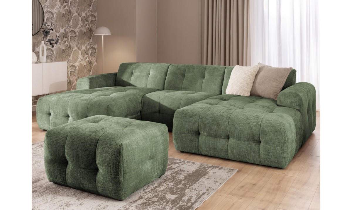 Dodatkowa pufa stanowi nie tylko stylowy element aranżacji, ale również zwiększa funkcjonalność narożnika(pufa sprzedawana jest osobno).