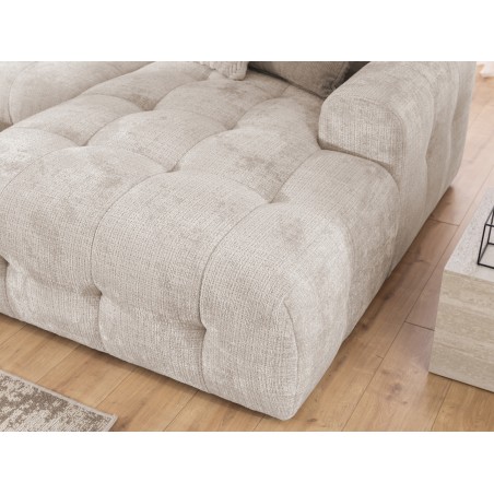 Dzięki możliwości dostawienia pufy, narożnik można łatwo przekształcić w przestronną powierzchnię do spania, idealną dla gości lub okazjonalnego noclegu.