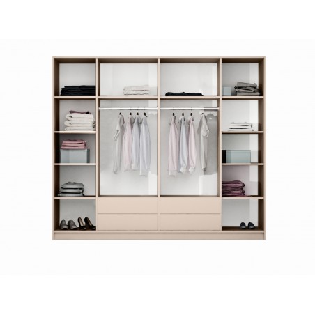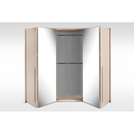 Zaprojektowana z myślą o codziennym komforcie użytkowania, oferuje doskonałe zagospodarowanie przestrzeni: szeroki układ półek, dwa drążki na wieszaki i obszerne wnętrze, które pomieści garderobę całej rodziny. Fronty z lustrem nie tylko optycznie powiększają pomieszczenie, ale też są niezwykle praktyczne w codziennym użytkowaniu.