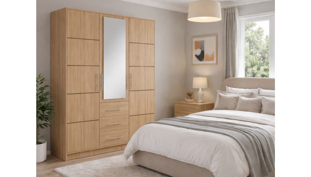Szafa Tali 3 drzwiowa z 3 szufladami i drzwi uchylne z lustrem.